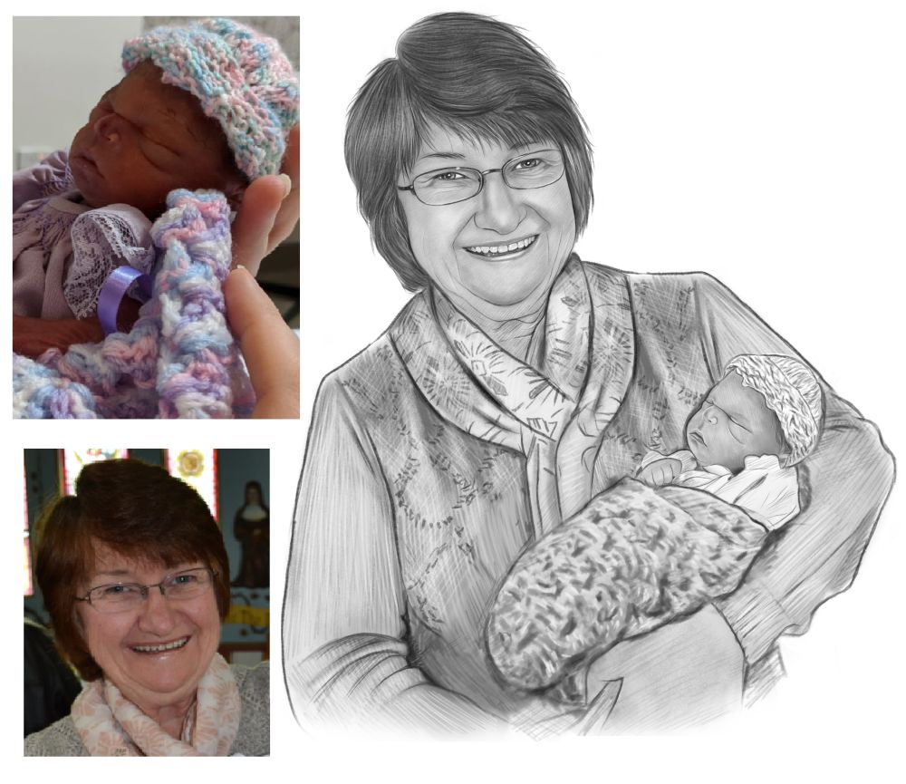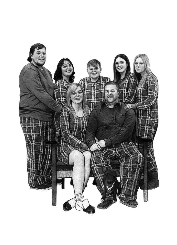 Our black and white portraits are a drawing style that offers a classic look and our lowest cost drawing option. These are particularly suited for more serious or classy drawings or those where we’ve been asked to draw from black & white photos.