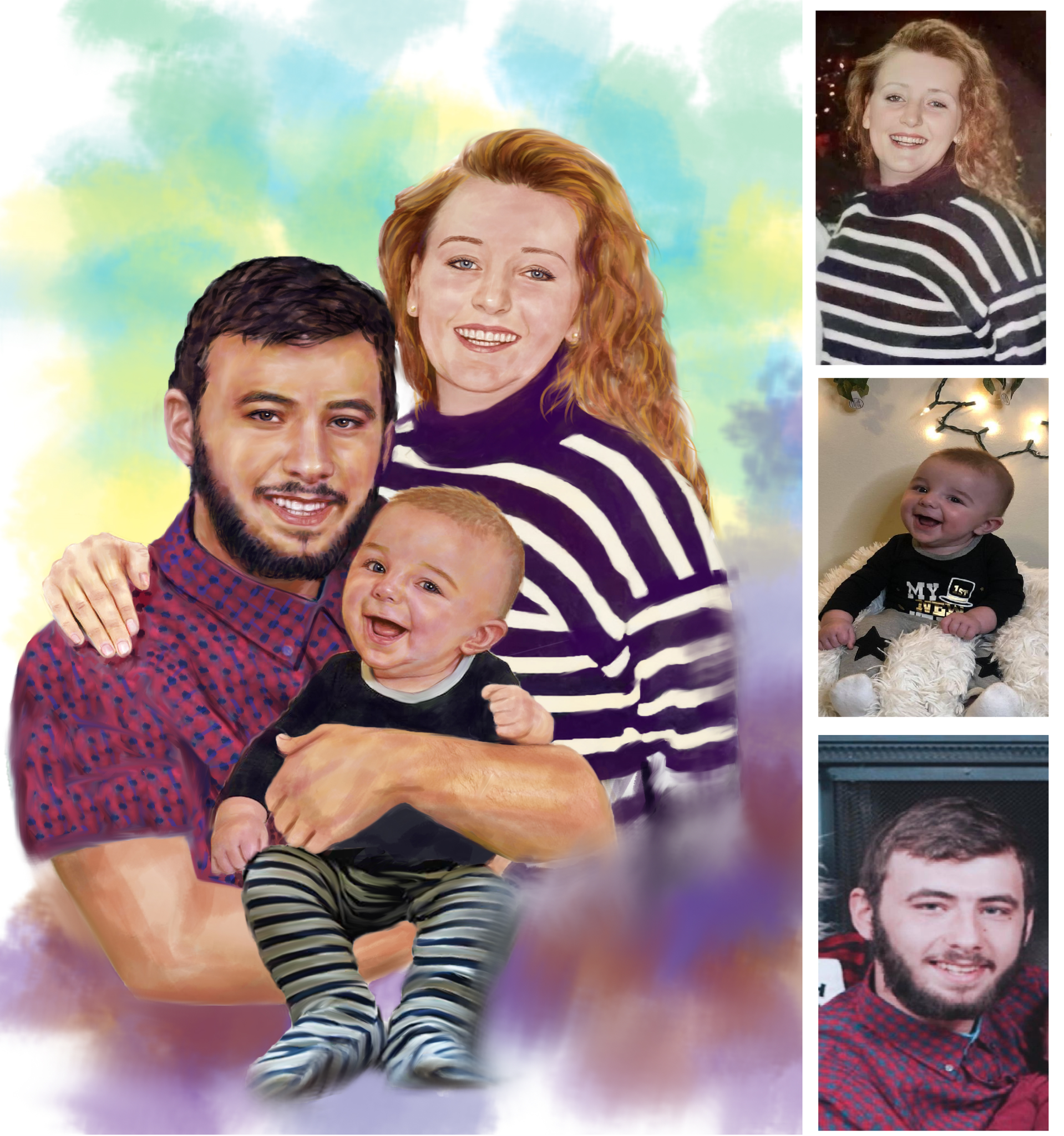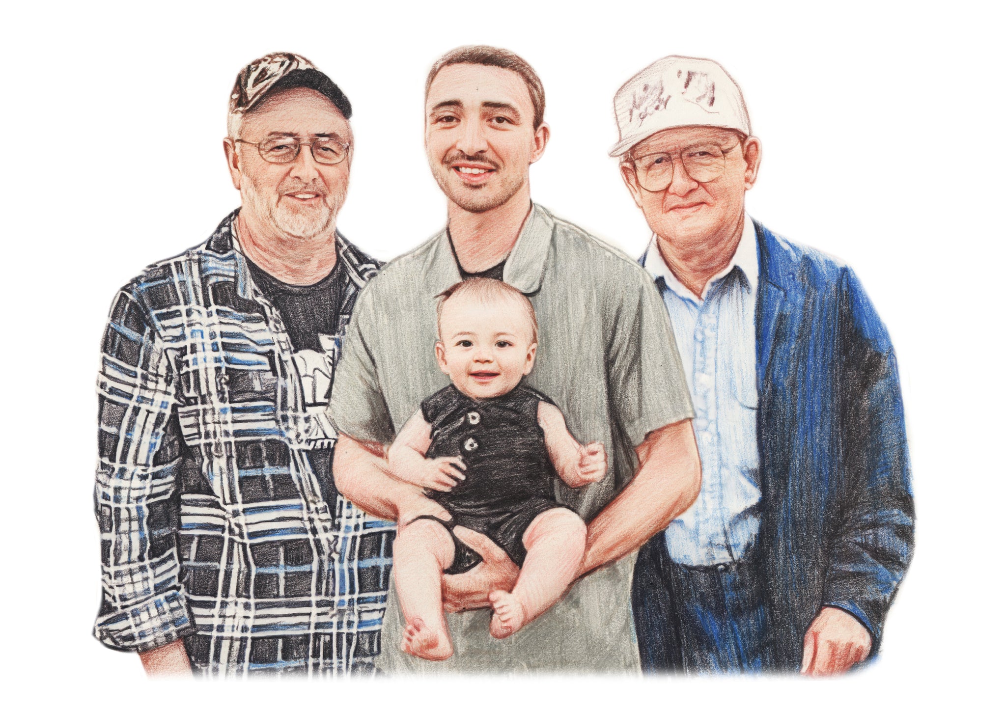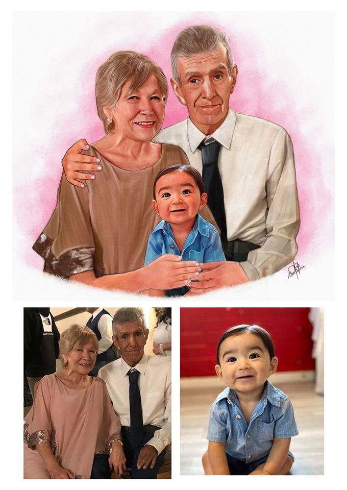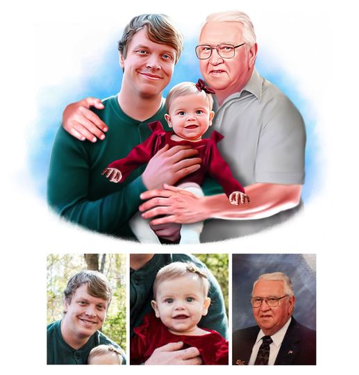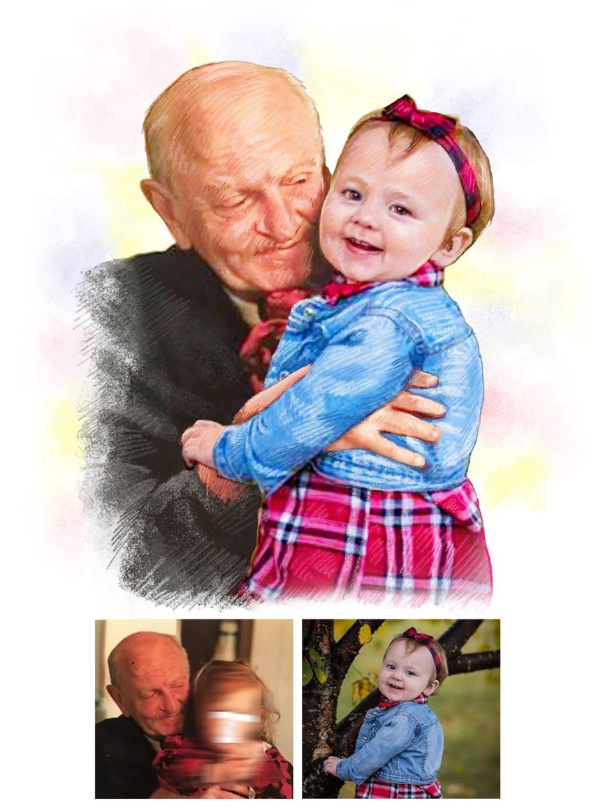 Our color portrait style is fun and our most popular style. It can be a vibrant addition to any room and makes a wonderful gift. We can even draw old black & white photos as color to really bring the past back to life.