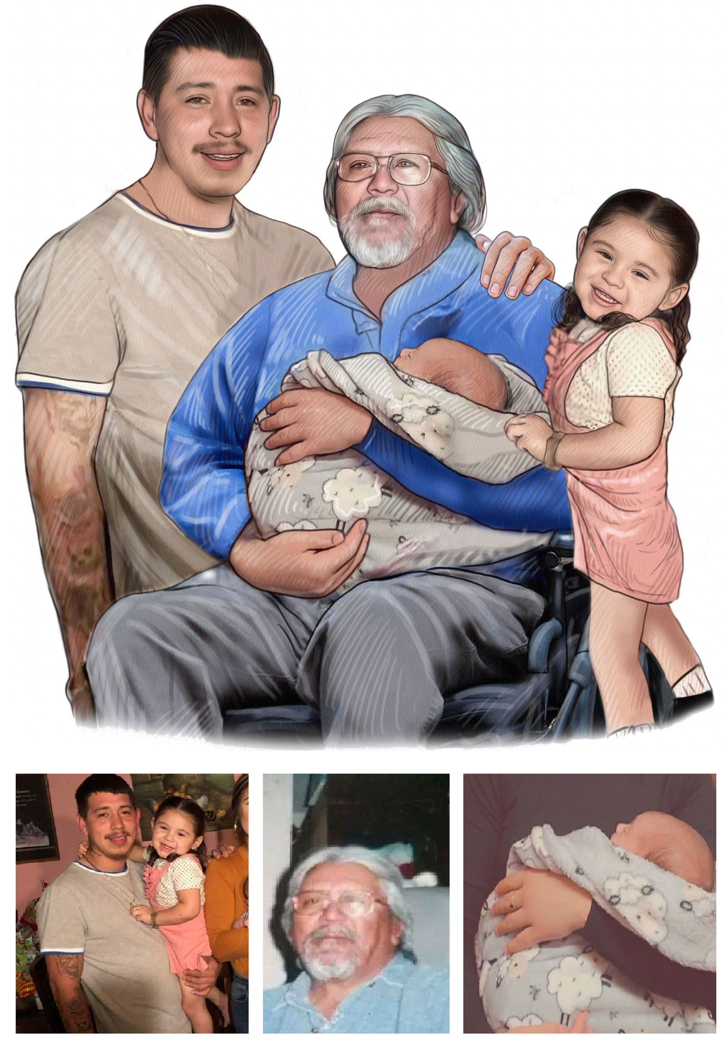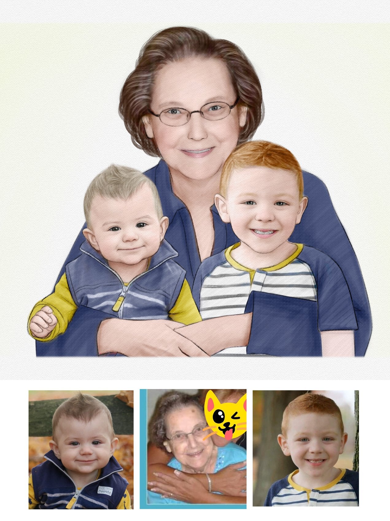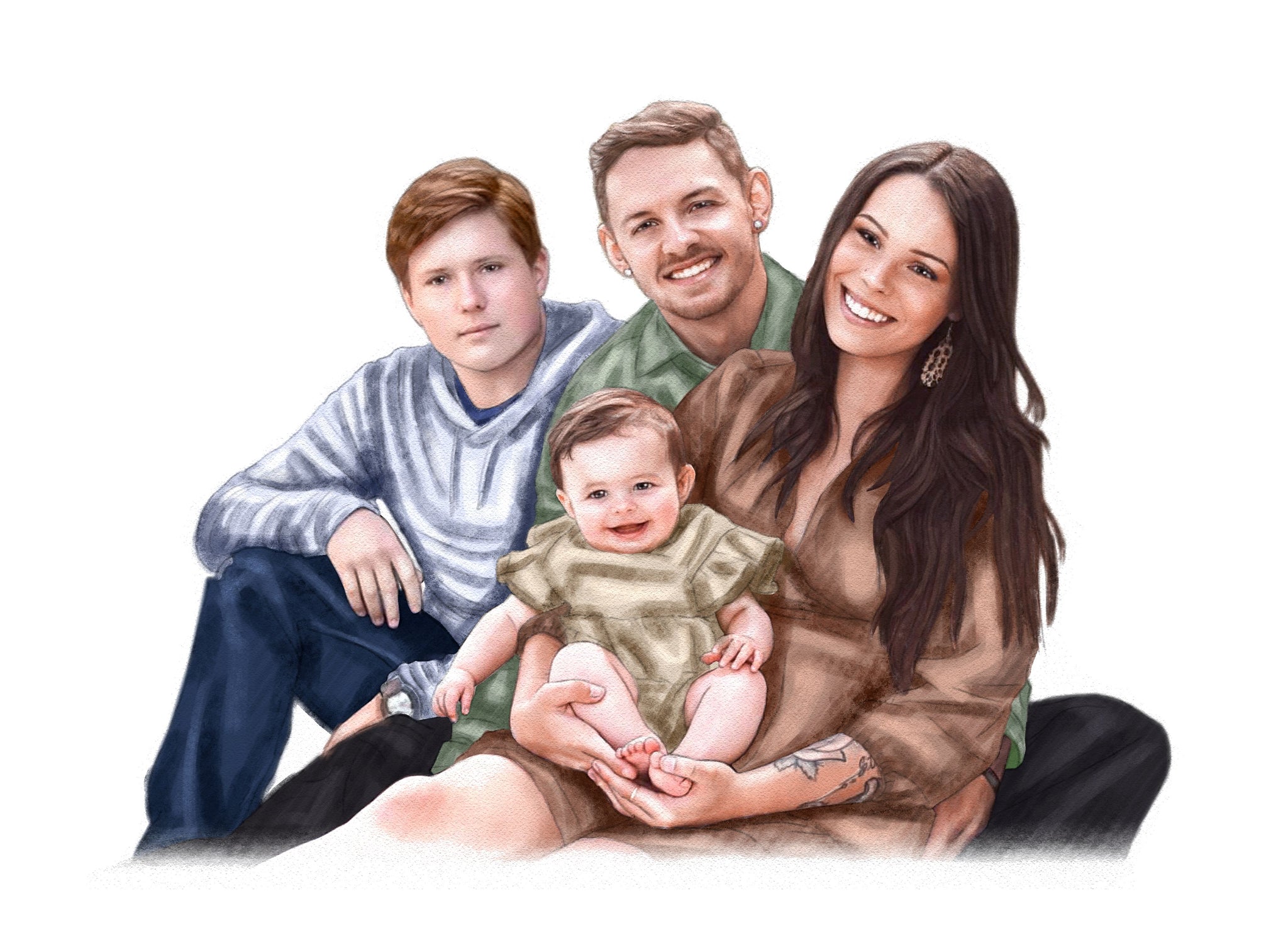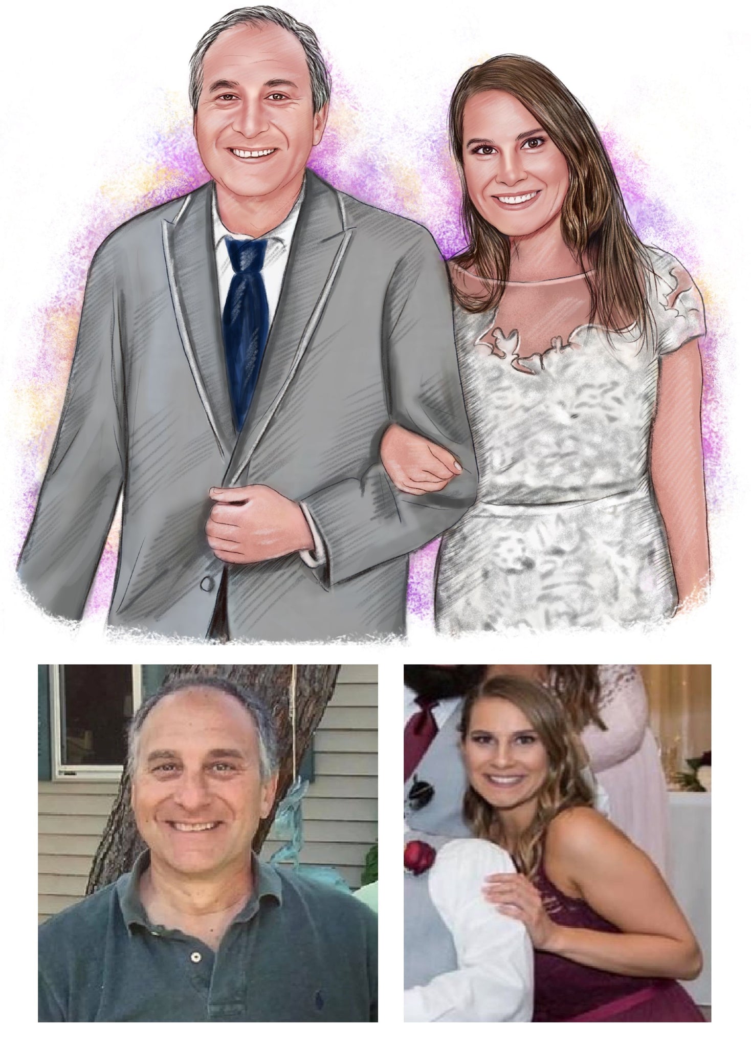 Our color portrait style is fun and our most popular style. It can be a vibrant addition to any room and makes a wonderful gift. We can even draw old black & white photos as color to really bring the past back to life.